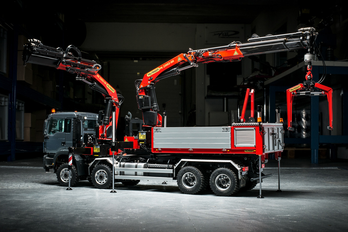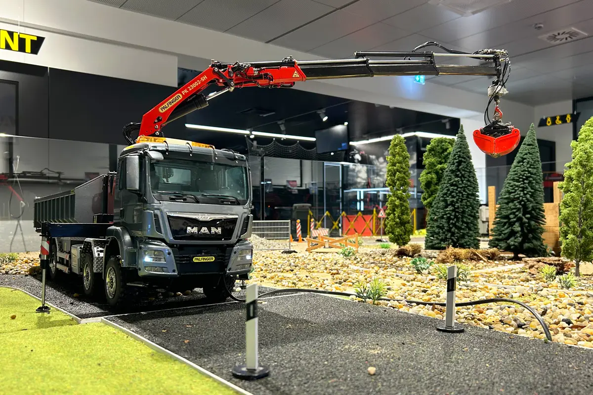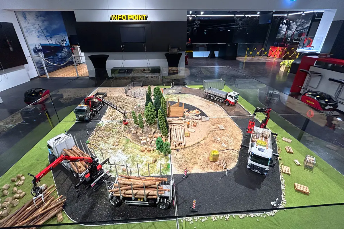 Neben Schulungszwecken eignen sich unsere Modelle auch hervorragend für Präsentationen und Messen. So fertigen wir beispielsweise Ladekranmodelle unter Lizenz der Palfinger AG, die komplexe Technik anschaulich und eindrucksvoll darstellen.